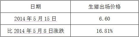 5月15日全省生猪平均出场价格