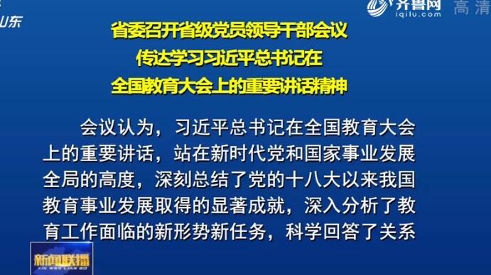 9月13日下午,省委召开省级党员领导干部会议,传达学习习近平总书记在全国教育大会上的重要讲话精神,传达学习李克强总理讲话和孙春兰副总理总结讲话精神,研究贯彻落实意见。 省委书记刘家义主持会议并讲话,省委副书记、省长龚正,省政协主席付志方,省委副书记杨东奇出席。 会议认为,习近平总书记在全国教育大会上的重要讲话,站在新时代党和国家事业发展全局的高度,深刻总结了党的十八大以来我国教育事业发展取得的显著成就,深入分析了教育工作面临的新形势新任务,科学回答了关系我国教育现代化的几个重大问题,对当前和今后一个时期教育工作作出了重大部署,为加快推进教育现代化、建设教育强国、办好人民满意的教育,指明了前进方向、提供了根本遵循。要深入学习习近平总书记重要讲话精神,着力领会精神实质,把握核心要义,真正把思想和行动统一到总书记重要讲话和全国教育大会精神上来,以高度的政治责任感做好我省教育改革发展各项工作。 会议强调,要把培养社会主义建设者和接班人作为根本任务,在坚定理想信念、厚植爱国主义情怀、加强品德修养、增长知识见识、培养奋斗精神、增强综合素质上下功夫,实现德智体美劳全面发展,培养一代又一代拥护中国共产党领导和我国社会主义制度、立志为中国特色社会主义奋斗终身的有用人才。要切实加强教师队伍建设和管理,营造全社会尊师重教的浓厚氛围,让广大教师安心从教、热心从教,更好实现立德树人目标。要不断深化教育体制改革,围绕教育发展的重大问题和群众关心的热点问题,加快破除体制机制障碍,提升教育服务经济社会发展能力,充分激发教育事业发展生机活力,为山东发展培养更多高质量人才。要切实加强党对教育工作的全面领导,不断加强思想政治工作,把党的教育方针贯彻到学校工作各方面,为教育改革发展提供根本政治保证,真正办好人民满意的教育。(记者 李子路 张国栋) |