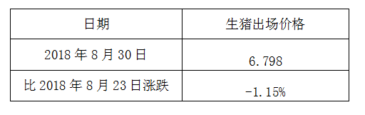 8月30日全省生猪平均出场价格