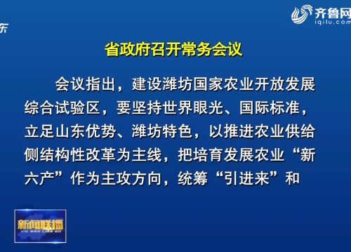 1月12日,省委副书记、省长龚正主持召开省政府常务会议,研究潍坊国家农业开放发展综合试验区建设、河长制湖长制等工作。 会议指出,建设潍坊国家农业开放发展综合试验区,要坚持世界眼光、国际标准,立足山东优势、潍坊特色,以推进农业供给侧结构性改革为主线,把培育发展农业“新六产”作为主攻方向,统筹“引进来”和“走出去”,加强体制机制创新,广泛集聚产业、技术、人才等资源要素,不断提高农业开放水平。要发挥好政府引导和市场主体作用,高标准建设全国蔬菜质量标准中心,加快构建新型蔬菜标准体系,促进蔬菜产业优质化、绿色化、品牌化发展。 会议听取了河长制湖长制工作情况汇报。会议强调,要着力提升各级河(湖)长履职尽责能力,健全河湖管护长效机制,落实“一河(湖)一策”任务,敢于动真碰硬,及时发现、整改问题,坚决杜绝虚假整改、表面整改。要广泛发动群众参与,使广大群众成为河湖治理的受益者、参与者、监督者,形成齐抓共管的良好格局。 会议审议通过了《山东省绿色建筑促进办法(草案)》,决定以省政府令的形式公布实施。会议强调,要严格执行建筑节能标准,稳步推进既有建筑节能改造,不断深化可再生能源建筑应用,大力推进绿色建筑发展。 会议还研究了其他事项。(秘书一处) |