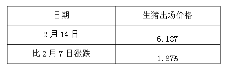 2月14日全省生猪平均出场价格
