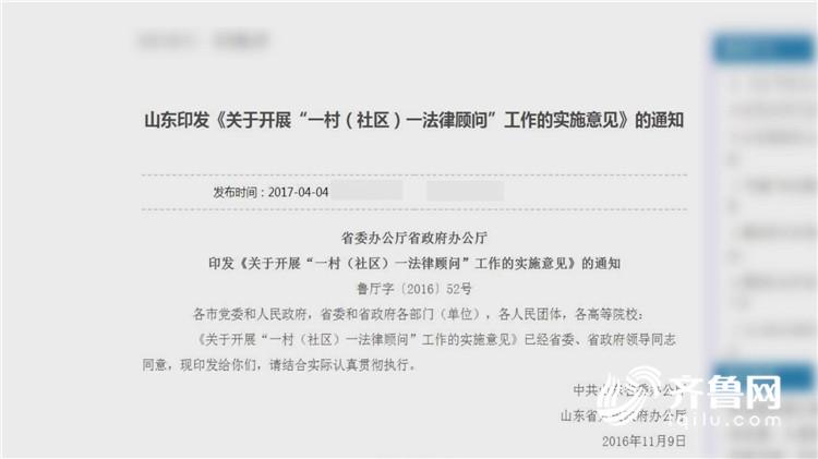 8月15日,山东广播电视台《问政山东》迎来第24期节目。本期问政山东省司法厅,节目一开始聚焦“一村一法律顾问”存在形式主义的问题。 2016年11月底,山东省印发了《关于开展“一村(社区)一法律顾问”工作的实施意见》的通知,深入开展“一村(社区)一法律顾问”工作,推动法律服务向农村、社区延伸,促进基层民主法治建设。明确了从2016年底开始一直到2018年10月提高“一村(社区)一法律顾问”工作的规范化、制度化水平。然而,记者在走访调查中却发现了不少问题。 在东营市利津县汀罗镇的大广子一村,记者在村子里走访了一圈,也没打听出村里的法律顾问到底是谁,大部分村民对此并不知情。 在2016年印发的《关于开展“一村(社区)一法律顾问”工作的实施意见》中规定,村(社区)要建立司法行政工作室,设置公示栏和便民信箱,公布法律顾问的姓名、职责、联系方式、驻点时间等。而在大广子一村的村委会,记者既没有看到专门的法律顾问工作室,也没能找到法律顾问公示栏。 在与大广子一村相邻的大广子二村,虽然在村委会门口张贴了法律顾问公示牌,但牌子上的公示信息却不见了。村委会的工作人员告诉记者,法律顾问确实有,但平时村里没什么事,就很少联系他们。 公示信息缺失或不全,让很多村民遇到法律问题不知向谁求助。随后,记者将了解到的情况反映给了利津县汀罗镇司法所。工作人员却表示“没有具体的要求说要贴上”。 在东营市广饶县的西十里堡村,村民们对于村里法律顾问的情况也是一问三不知。 随后,记者询问了一名在村委会值班的工作人员。但令人意外的是,不仅这位工作人员对于法律顾问同样不了解,甚至在联系了另外两个村委成员后,也没能找到他们口中的公示牌。 在广饶县的西尧村和济宁市梁山县拳铺镇的东吴村,记者也发现了同样的问题。 记者在梁山县拳铺镇调查发现,有的法律顾问一人就负责了12个村庄,服务时间和服务内容能保证吗?一位律师告诉记者,一个月一个村八小时,相当于一个月总共12天。然而他们还有很多工作要做,所以法律顾问的工作一般都是通过电话联系。 梁山县拳铺镇司法所所长也向记者表示,“没有一个月要在村里工作8小时的规定,律师们都很忙。” 本应是司法厅主导推进的“一村一法律顾问”,好好的政策到基层却走了样,问题到底出在了哪儿?问政现场,山东省司法厅厅长解维俊表示,“没有想到出现问题的面这么大。” 对于片子中反映的村子里的法律顾问没落实、落实后没坚持下来的情况,解厅长认为,由于部分法律顾问负责的村比较多,有的一个律师甚至同时担任30个村的法律顾问,精力所限影响了职责的发挥,让这一政策在实际运行起来和现实有差距。 解厅长表示,接下来,山东省司法厅将更加科学地设置律师担任村法律顾问的规模,加大对律师担任法律顾问工作的考核,建立律师激励机制,来保证和促进律师在担任村法律顾问时尽职尽责。通过建立更好的制度规范、建立信息化管理平台,优化对“一村一法律顾问”的管理,让律师在村里开展工作的情况、取得的成效、群众的反映通过平台展示出来,使之在平台上能够一目了然。 同时,山东省司法厅也将积极争取有关部门的支持和各级政府的支持,加大对“一村一法律顾问”财政的投入力度。 |