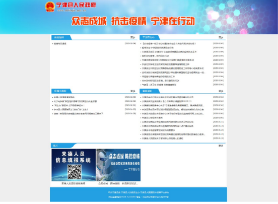 为加强新型肺炎疫情期间信息公开和舆论引导,德州宁津县及时建立“众志成城、抗击疫情、宁津在行动”疫情信息专题,及时发布消息、做好回应关切、加强舆论引导,牢牢把握抗击舆情的信息阵地,为引导公众、安定民心、增强信心注入强大正能量。