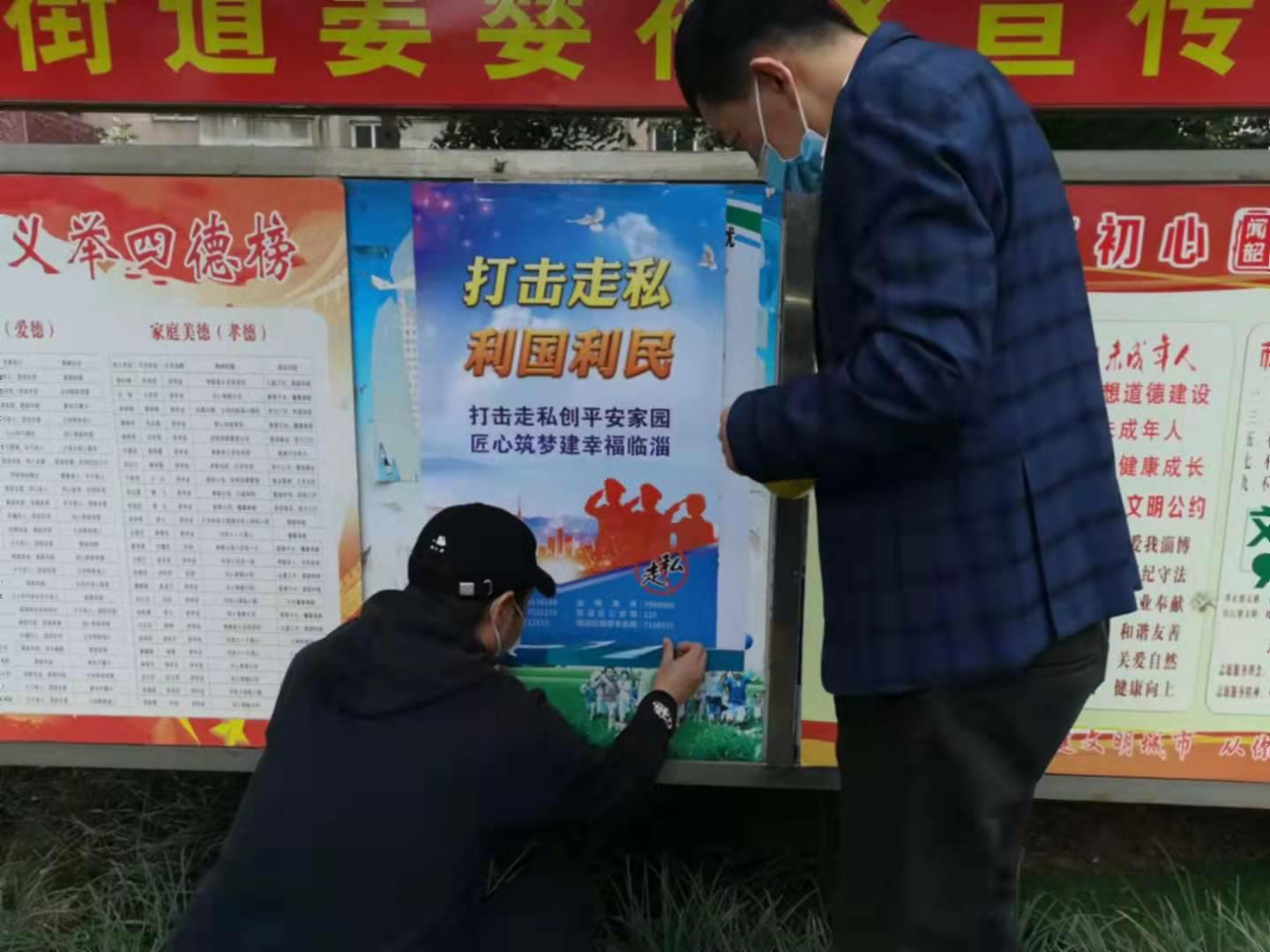 近日,淄博市临淄区政府打私办联合区公安分局、市场监管局等单位和各镇街道,深入社区、村居、农贸市场等开展打击走私普法宣传活动。一是依托居民区宣传栏、LED电子屏进行宣传,集中发放打击走私宣传教育手册,张贴打击走私宣传海报;二是工作人员结合群众大走访等工作开展入户宣传,向群众宣传反走私相关法律法规,深入讲解冻品、毒品等常见走私物品走私方式及危害,呼吁广大群众自觉抵制、举报走私行为。