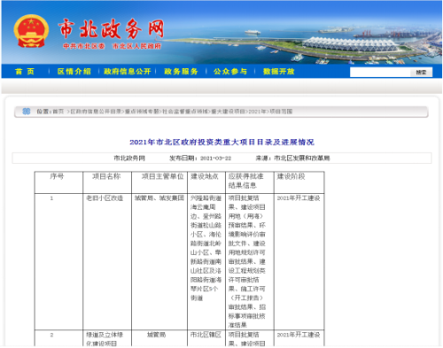 通过市北区政务网及时公开重大项目目录、项目建设地点、主管单位、建设进展等信息。通过组织调度会、座谈会等方式,指导责任单位解决项目推进过程中的难点、堵点和痛点问题。截至目前,12个市级重点项目已全部开工。