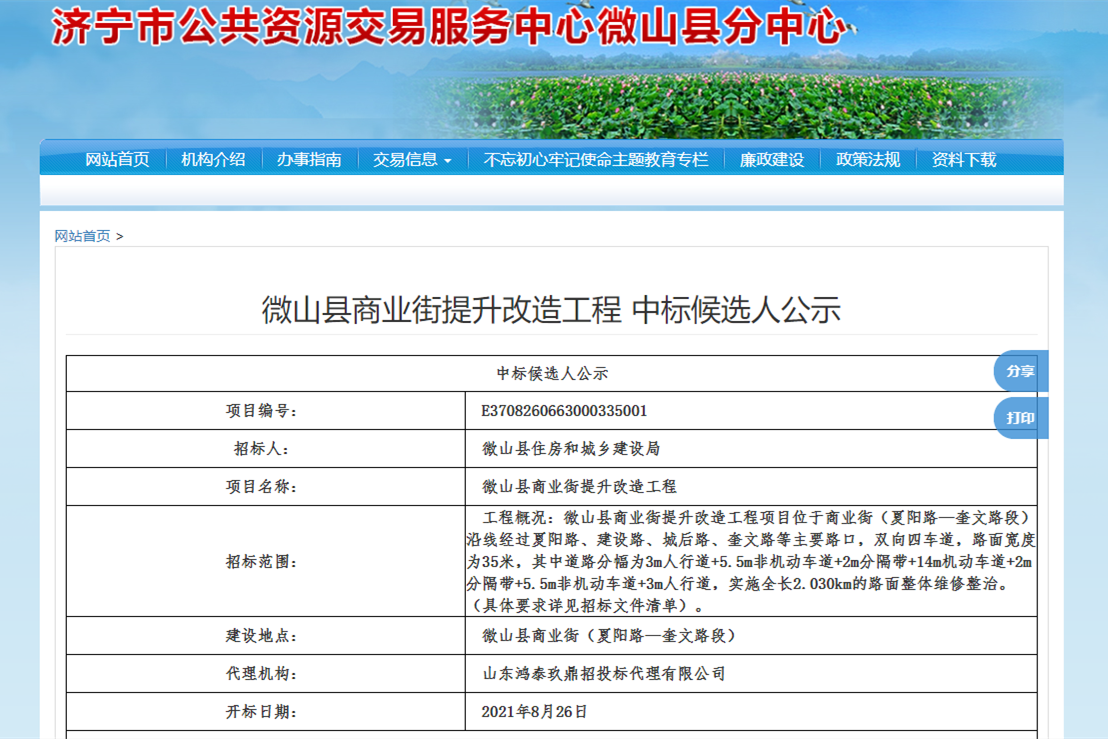 为进一步推进公共资源配置领域信息公开,微山县以招投标全流程电子化为着力点,聚焦“标前、标中、标后”全流程,深入推进招投标项目信息公开,打造“公开、公平、公正”的阳光交易平台。