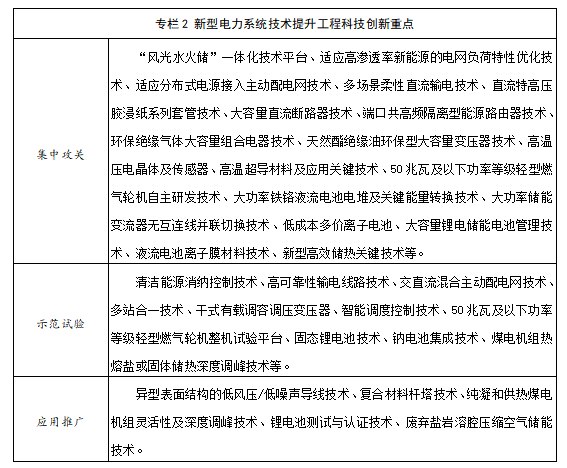(二)新型电力系统技术提升工程