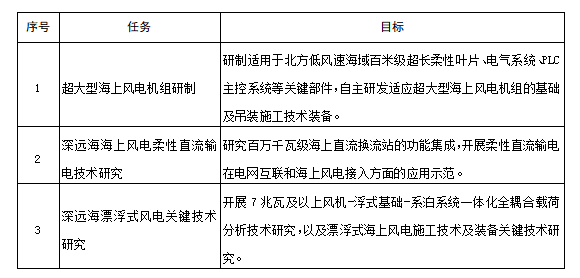 4.漂浮式风电关键技术。攻关漂浮式海上风电机组装备关键技术,研究适用于深远海域的半潜式基础平台、漂浮式海上风电机组系泊系统、动态海缆等关键技术,开展远海大型风电场设计建设、海上风力发电运输、施工、运维成套设备等技术研发。