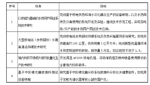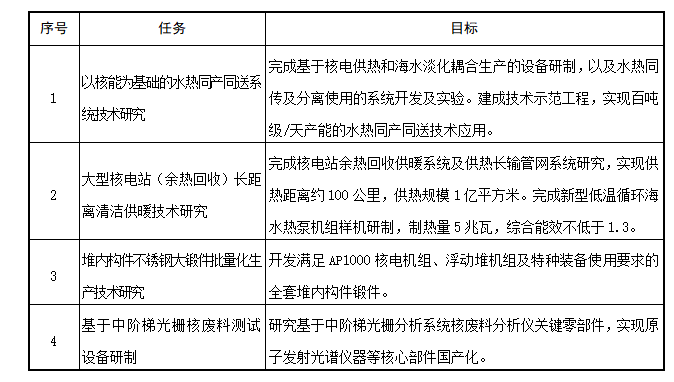 5.环境保护与三废处理。开展核电放射性废水处理、多能耦合集成海水淡化、蒸汽重整核废物、工程模拟装置等技术研发。