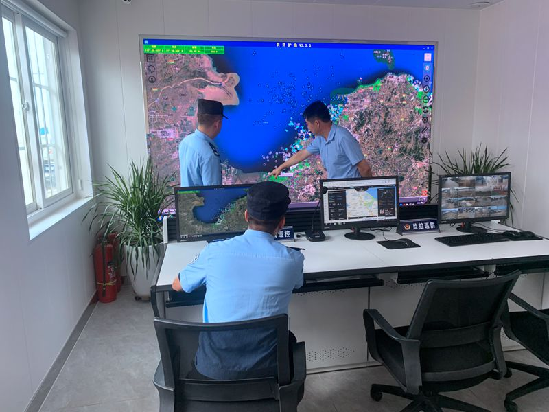 三、加强智慧管控,实现“科技化管海、信息化巡控”。 为强化大马力船舶管控,降低走私、偷渡风险,提升智慧管海警务能力,莱州市海岸警察部门不断推动资源整合、系统共享,实现科技化管海、信息化巡控。三山岛海岸派出所依托三山岛渔港海岸社会治理中心,搭建智慧管控中心,积极争取多方支持,在港口码头和岸线重点部位架设高清探头160路,海防雷达、交通卡口、电子围栏各2处,建设海岸雷达监测平台、公安人车智能识别多维感知系统各1套,船舶人证识别报备点3处,推动船体在12米以上的919艘船舶安装AIS,所有船只装配北斗等通导设备,并融合接入海洋渔业、海事等涉海部门“渔船渔港动态监管平台”“船舶北斗监管平台”等系统4个,搭建起覆盖港口、码头、岸线和海上作业面的立体管控平台,实现了人车进港可识别、船舶出入能感知、船只作业有轨迹,构建起覆盖人、车、船、物、港的五张海岸天网。