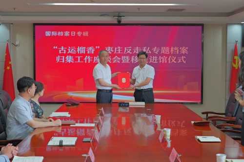 近日,枣庄市打私办联合枣庄市档案馆召开枣庄反走私专题档案归集工作座谈会暨移交进馆仪式,枣庄市政府办公室负责同志、枣庄市档案馆馆长出席活动。