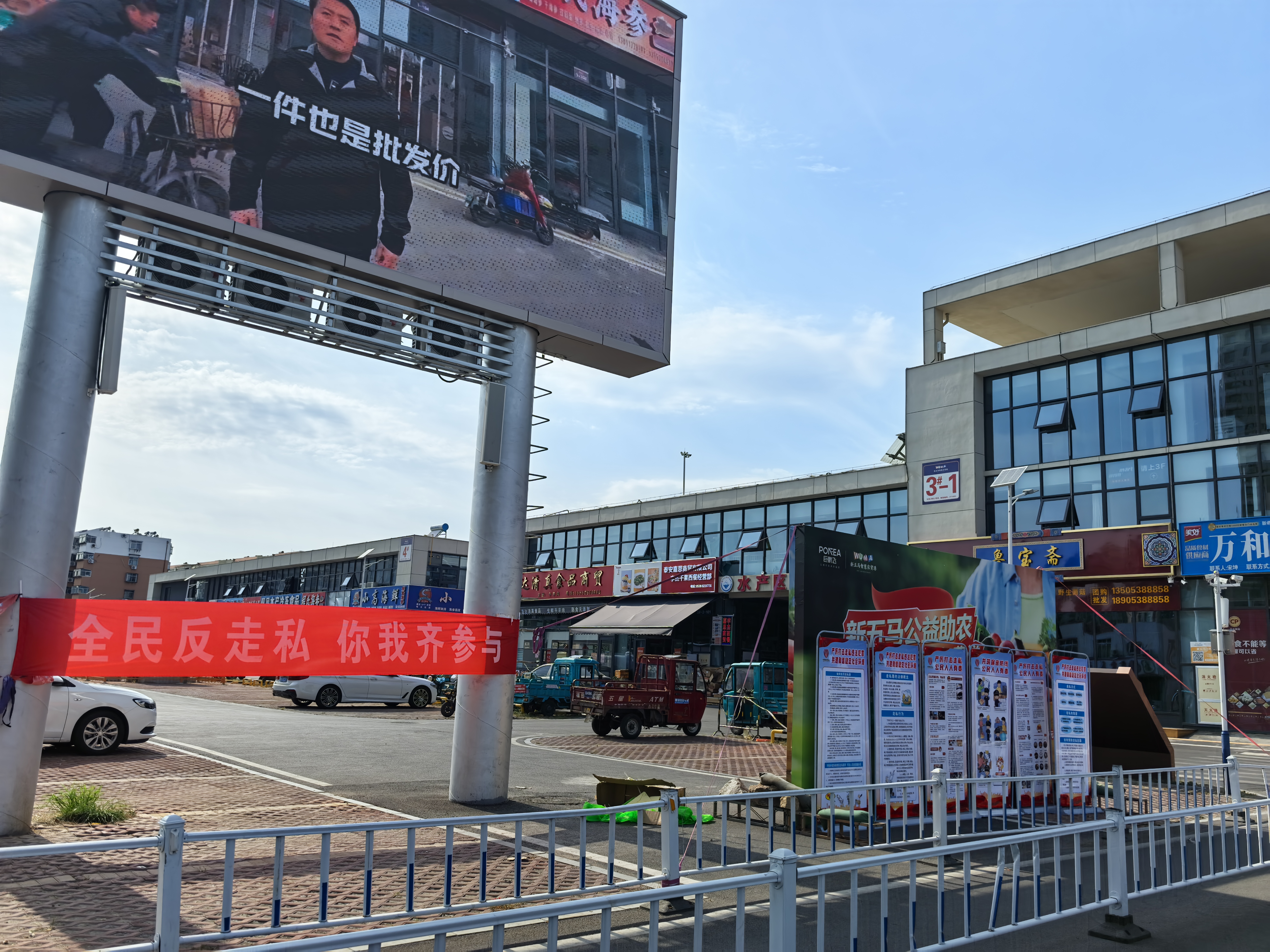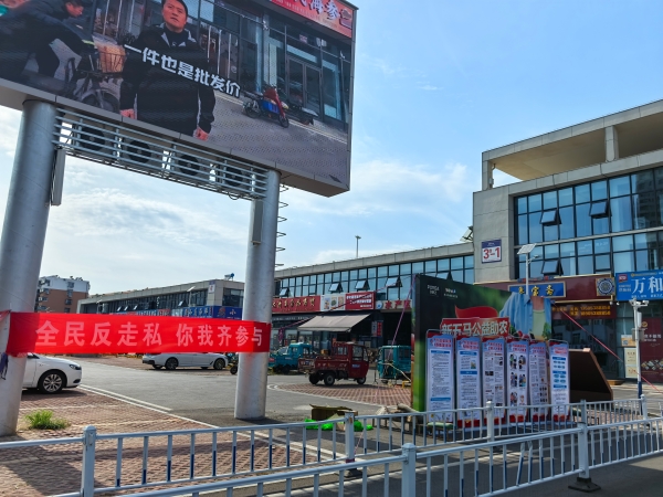 在新五马智慧农贸港活动现场,设置多个宣传区域,通过悬挂横幅、展示展板、发放宣传资料等方式,向市场商户和消费者直观呈现走私犯罪的各种形式、手段以及对国家和社会造成的危害,讲解识别、防范及举报走私方法,引导大家自觉抵制走私。同时,市场监督管理局工作人员对市场冷冻仓库、销售摊位进行执法检查,通过查验进货单据、合格证明等方式重点对冻品走私情况开展排查。