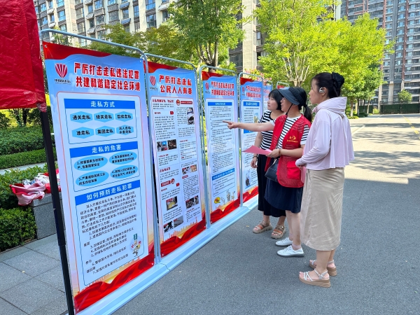 在学苑社区活动现场,“严厉打击走私,公民人人有责”标语醒目,反走私展板展示走私普通货物、毒品等典型案例。工作人员结合案例,向居民讲解走私违法性、常见套路,及“带货”“帮带物品”等易被利用的走私手段,剖析其对国家经济秩序、社会安全的冲击,教授识别、防范及举报方法,引导大家自觉抵制走私。