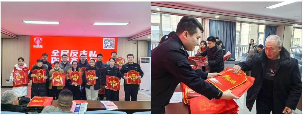 沂水县:沂水县打私办会同公安、市场监管等部门,开展“春节守护·反走私同行”主题宣传活动。活动深入社区,针对中老年群体、年货消费者及经营者,围绕节日消费相关商品领域展开宣传。现场通过发放宣传材料及春联福字、现场答疑、搭建“普法宣传站”等方式,引导居民从正规渠道购买年货,督促商户守法经营。活动共接受咨询40余人次,累计发放宣传材料800余份,覆盖人员1000余人次。
