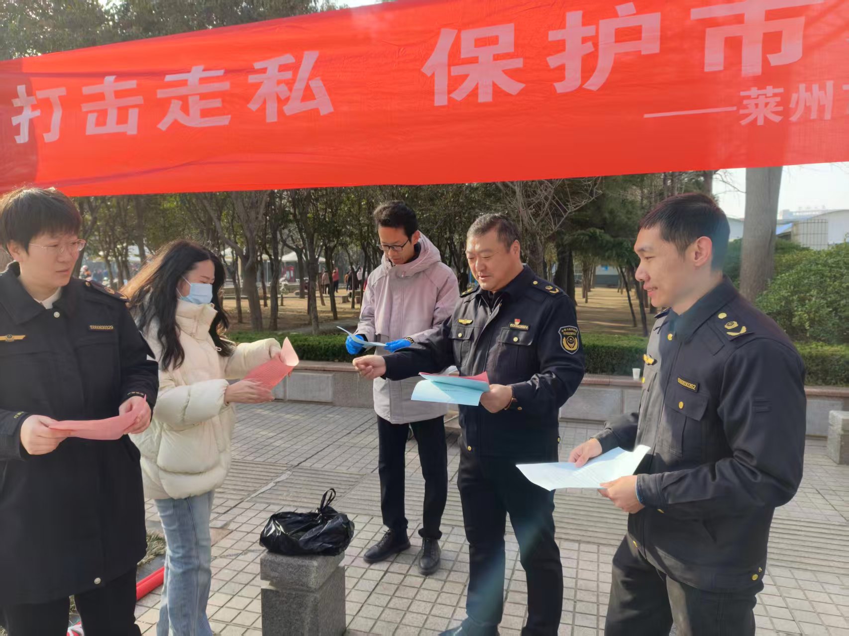 莱州市与海阳市同步开展反走私主题宣传活动,形成区域联动效应。莱州市打私办在市区广场组织20余个部门及40余家经营单位参与集中宣传,通过悬挂横幅、现场答疑、案例解读等方式,发放宣传资料2140余份,重点普及走私食品危害及举报途径,强化群众辨别能力与社会责任感。另外,烟草执法部门启动“3.15”主题宣传周,执法人员“进校园、进高铁站、进码头”,通过面对面宣讲、案例解读等形式,向消费者普及烟草专卖有关法律法规知识,提升依法维权能力,引导零售户诚信守法经营。在学校宣传中,重点讲解电子烟危害及国家监管政策,守护青少年健康成长。
