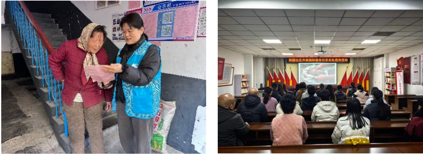 兰山区打私办采取“集中学习+入户走访+沿街巡查”的方式开展宣传活动,组织观看教育片,以案释法解读法律法规与走私危害,深入社区、商铺讲解涉林走私、野生动植物非法交易等违法犯罪的法律责任与举报途径,引导居民与商户守法经营、抵制走私。提升群众知晓率与参与度,营造“守护森林、抵制走私”氛围。
