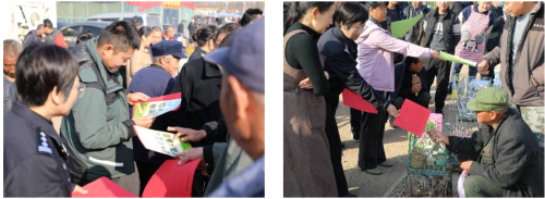 沂水县打私办联合多部门深入社区、广场、林地、学校等场所,通过播放宣传片、发放宣传手册、倡议书、现场讲解等形式,普及《森林法》《野生动物保护法》等有关知识,讲解珍稀树种、濒危野生动物识别方法及走私危害。活动出动执法人员140余次,发放宣传手册1200余份、倡议书800余份,覆盖群众2300余人。