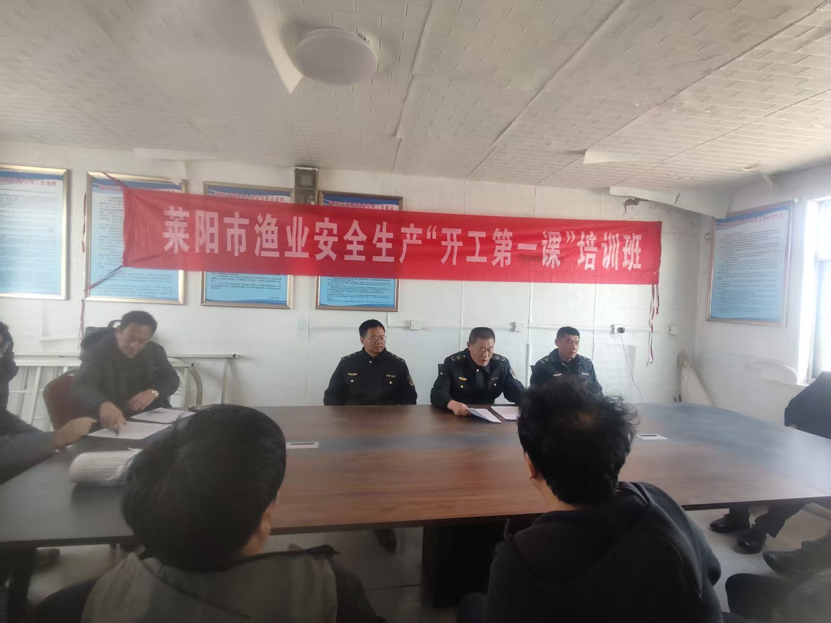 莱州市实施"培训+执法+宣传"三融合工作模式,将反走私宣传深度融入安全生产培训。采取"现场授课+案例警示"形式,围绕渔船"六防"要求、船舶适航自查等重点内容开展实操讲解,严格落实"不开课不复工、不上课不上岗"要求,实现辖区渔港码头、渔业企业和从业人员全覆盖。