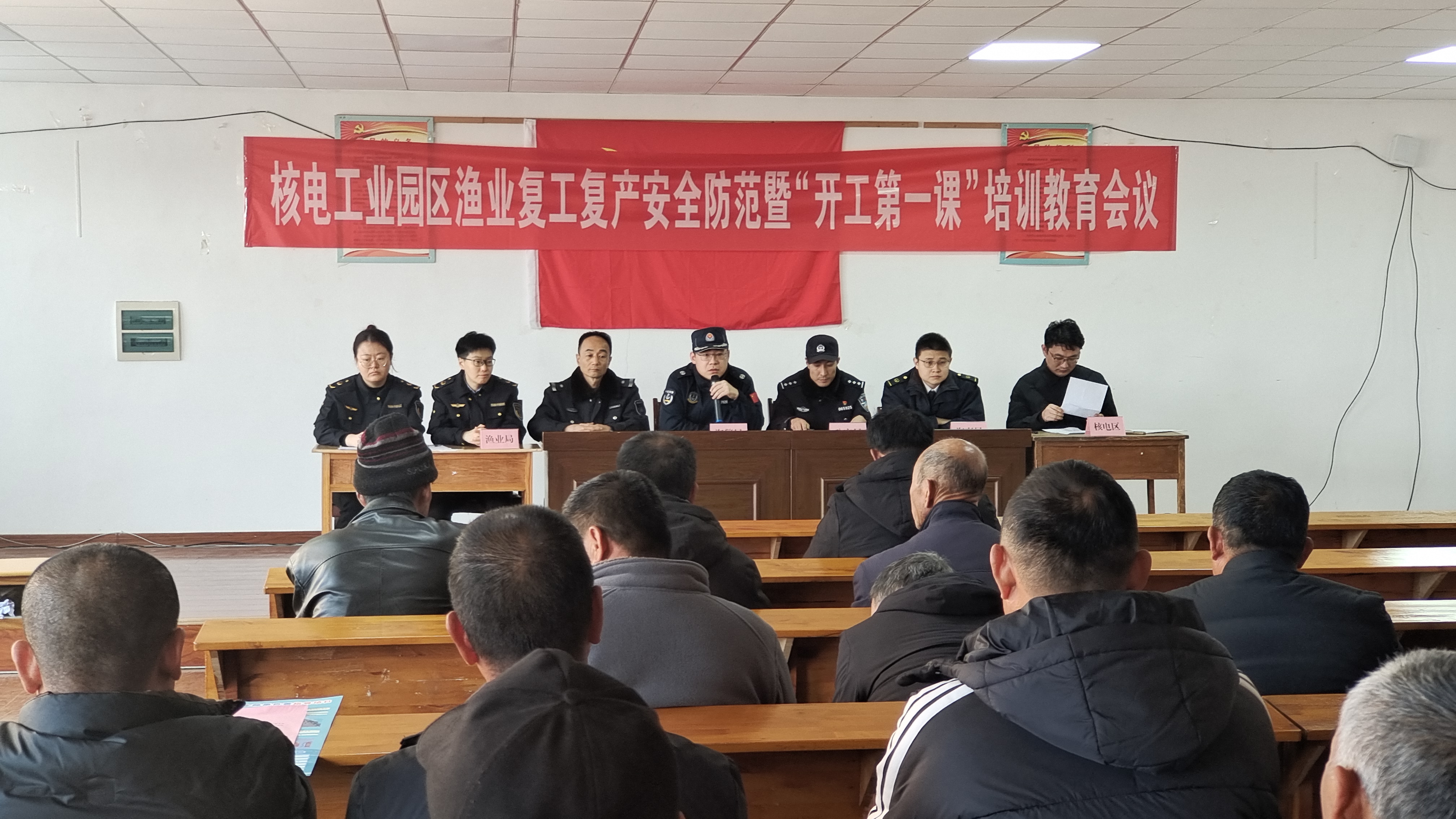 海阳市组织海警、渔业、海事、公安等部门,联合核电管委,开展“开工第一课”专题普法宣讲活动。系统解读《海警法》等法律法规核心内容,结合真实案例强调安全生产和遵纪守法的重要性,明确要求出海作业必须做到“人证相符、船证相符”,杜绝海上走私等违法行为。