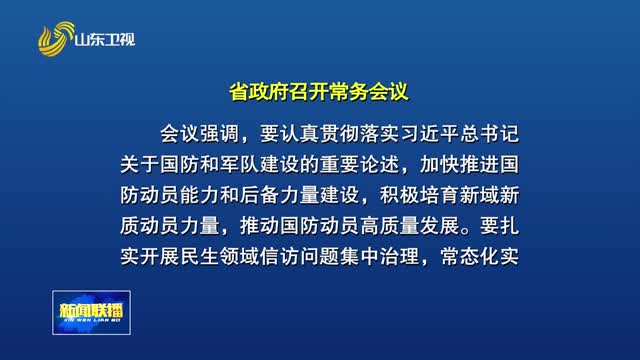 会议原则通过《山东省国防动员建设“十五五”规划》,强调要认真贯彻落实习近平总书记关于国防和军队建设的重要论述,加快推进国防动员能力和后备力量建设,积极培育新域新质动员力量,深化国防动员宣传教育,推动国防动员高质量发展,为巩固提高一体化国家战略体系和能力贡献山东力量。